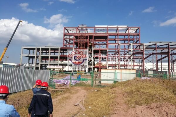 現(xiàn)場廠房框架已完成